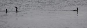 I turned my attention towards the water, where, beyond the man fishing, a few cormorants were out searching for food. I considered them a whole heard of mini loch ness monsters. There seemed to be some interesting interplay between them as they worked together and then moved off on their own, only to work with the other one. Definitely shifting allegiances for these three.